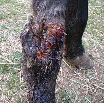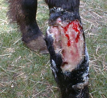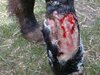 Winona's leg injury prior to treatment |